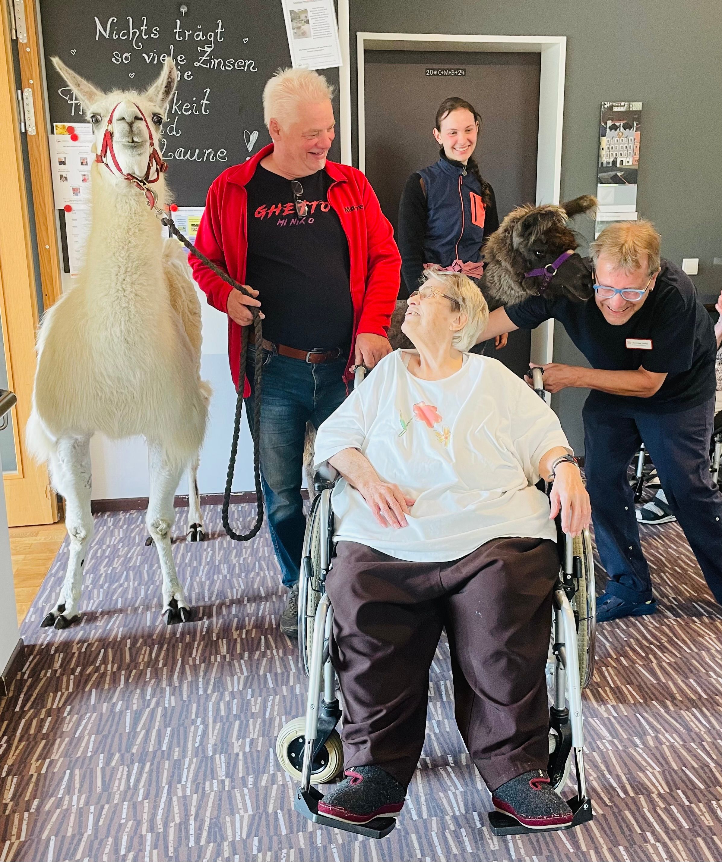 Heute war ein ereignisreicher Tag für uns und unsere Bewohner. Wir durften vier Lamas, von der LamaOase von Sabine und Manfred Zallinger aus Erlbach, in unserem Haus begrüßen. Es war ein wundervolles Erlebnis und wir werden das nicht so schnell vergessen….wir danken von Herzen für diesen tollen Vormittag
