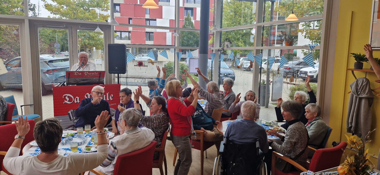Auch in diesem Jahr konnten wir wieder ein "zünftiges" Oktoberfest mit unseren Bewohner*innen der Einrichtung und den Gästen der Tagespflege feiern. Alle waren eingeladen bei stimmungsvoller Musik mit unserem bekannten Musiker "Paule" zu feiern. Es wurde ausgelassen getanzt, geschunkelt und geklatscht und die bayerischen Schmankerl haben sich alle besonders gut schmecken lassen. Es war für uns alle ein sehr gelungener Tag und wir konnten das "Oktoberfest" ein klein wenig zu uns nach Ingolstadt zu holen.
